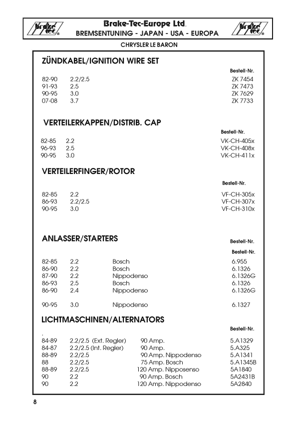 Bremsscheiben VA + HA Keil- und Steuerriemen Verteilerkappen