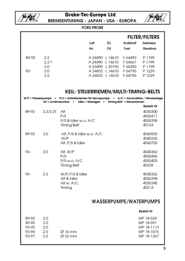Bremsklötze VA + HA Keil- und Steuerriemen Zündkabel