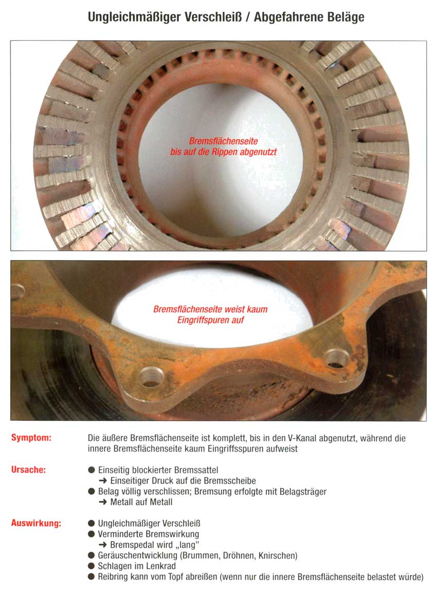 • Ungleichmäßiger Verchleiß /Abgefahrene Beläge