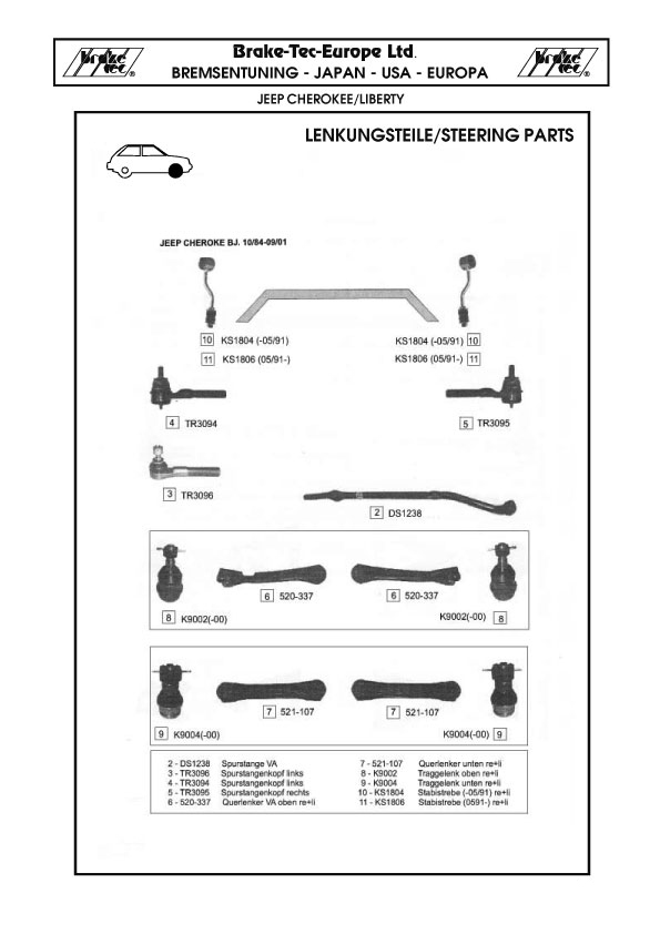 Lenkungs- und Spurstangenteile USA Jeep Cherokee Spurstangen - Spurstangenköpfe - Lenkungsteile Abbildungen