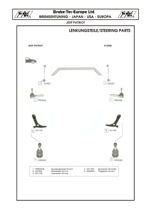 Lenkungs- und Spurstangenteile USA Jeep Patriot Spurstangen - Spurstangenköpfe - Lenkungsteile Abbildungen